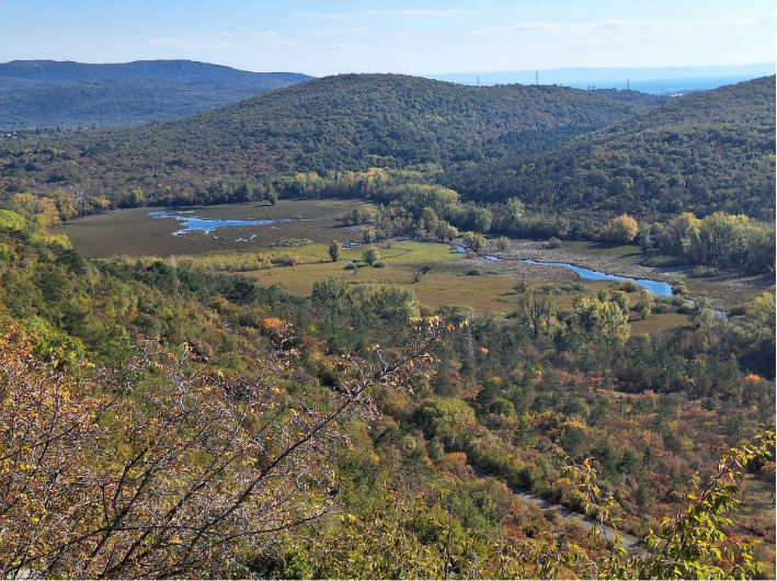Vse od septembra, ko je vodja Odbora za varstvo gorske narave pri MDO PD Ljubljana, Nevenka Rajhman, napovedala vsakoletno izobraževalno ekskurzijo za varuhe gorske narave in gorske stražarje, sem z nestrpnostjo čakala soboto, 18. oktobra 2025. Toliko bolj, ker je bil ponovno izbran cilj v zamejstvu, ki ga ne obiščemo prav pogosto in nam je v večini neznan. Tokratna poučna ekskurzija nas je popeljala v vasico Štivan, k izviru kratke, a temu živahne reke Timav, na mokrišču in po učni poti ob Doberdobskem jezeru, skozi kraško gmajno, med lovorovimi drevesi, spremljal nas je že obarvan ruj……topel jesenski dan je bil in pogled na kljub široki, ravno in prijazni pokrajini z razgledišča Gradina čez Ronk vse do Gradeža v daljavi so ga zaokrožili v popolnost.