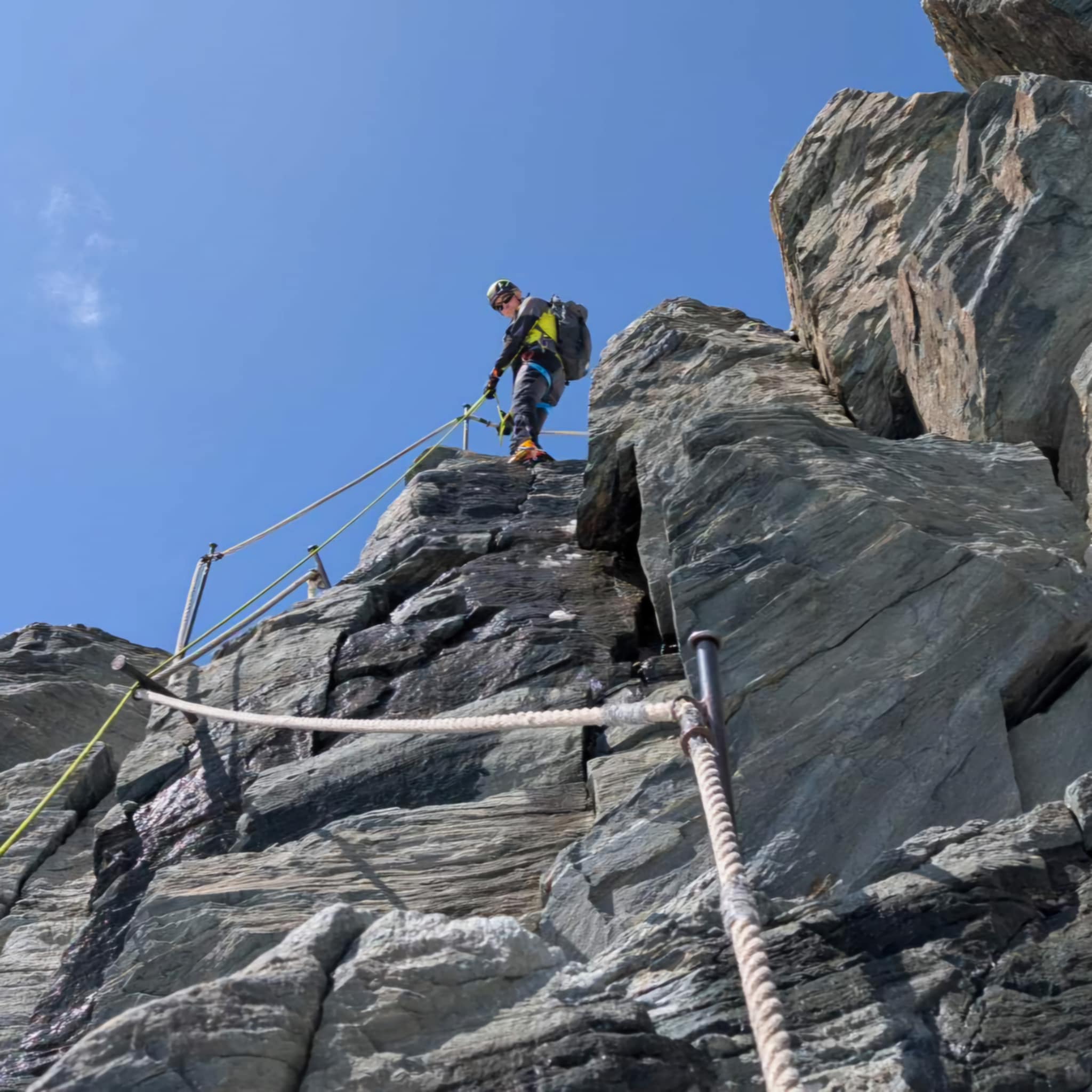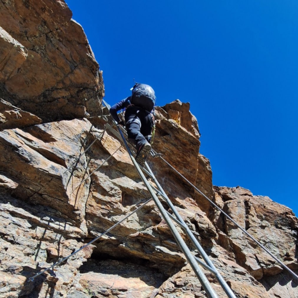 Po prihodu v Saas-Grund smo v nahrbtnike naložili opremo za feratanje in se z gondolo zapeljali do postaje Kreuzboden. Od tod smo peš nadaljevali do vstopa v ferato na Jägihorn (3206 m)…